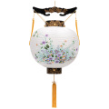天秤付きの丸型の盆提灯で、上から吊り下げて飾ります。伝統的なデザインの御殿丸(御天丸)提灯です。