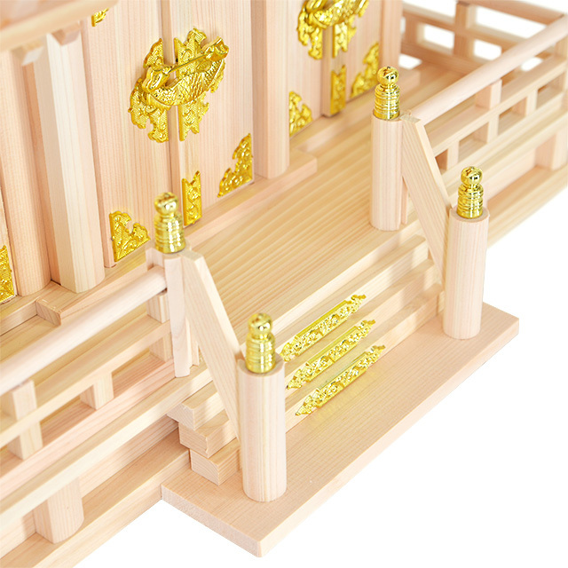 ■三社造り:三体をお祀りできる、広々とした造りです。 ■お札が簡単に入る!:背板が取り外せる仕様で、お神札を簡単に入れることができます。 ■日本の心のこもった国内製造の神棚:伝統を受け継いだ職人が、腕によりをかけて造りました。 細かな部分まで心の行き届いた、高品質な造りで長く安心してお祀りいただけます。 ■木曽ひのき製:「木曽ひのき」は、1200年の歴史を持つ伊勢神宮の祭儀や御神木にも用いられる高級木材です。 「木の里」で産出された木曽ひのきは、細かい木目が美しく耐久性や抗菌性にも優れており、建材としても広く用いられます。
