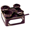 お彼岸やお盆、法事の時に、ご本尊やご先祖様へ精進料理をお供えする際のお膳とお椀のセットです。蒔絵が施された華やかな霊供膳(お仏膳)セットです。※プラスチック製です。