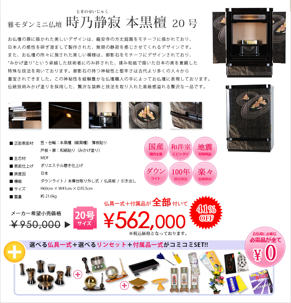 雅モダンミニ仏壇 時乃静寂 本黒檀 20号