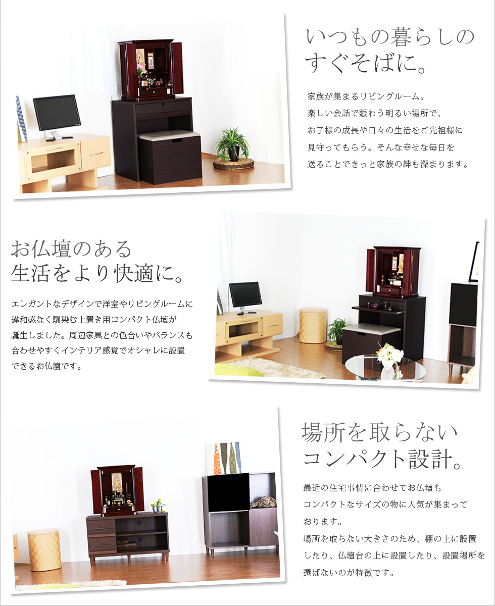 | ■ 機能 | 本尊台・須弥壇取り外し式 / 仏具板 / 引き出し | |