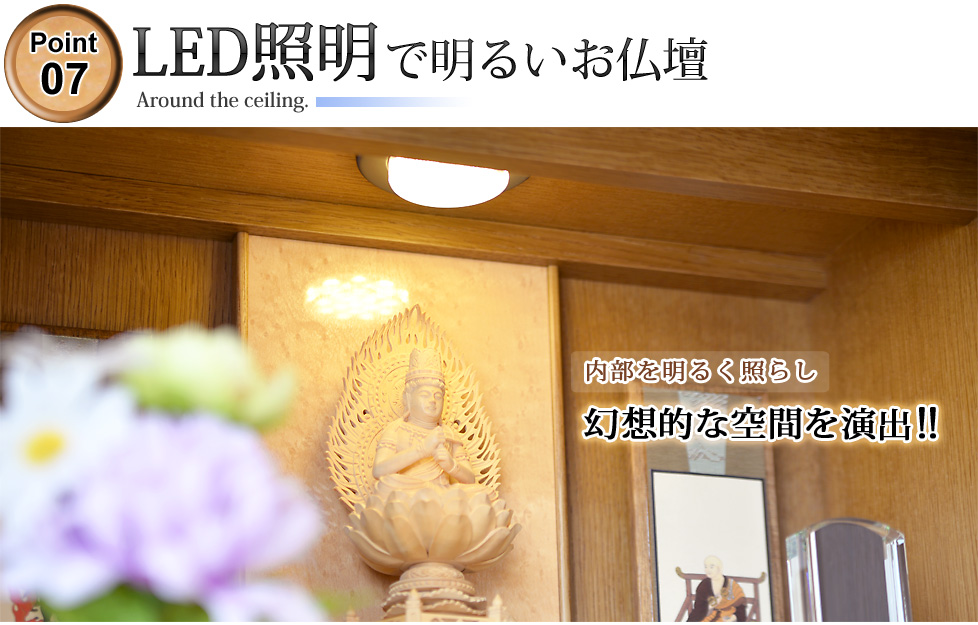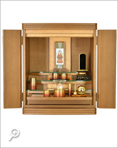 近年の住宅事情を考慮し、和洋室どちらに置いていただいても、その落ち着いた外観は違和感無くお部屋に馴染むため、末永く飽きのこないデザインとして、親しまれるお仏壇です。
