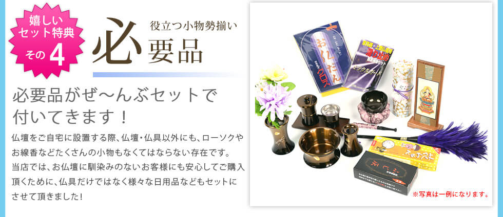 ※必要でない仏具、追加が必要な仏具等のご要望、またはご相談がある場合はご遠慮なくご連絡ください。 - 注意
