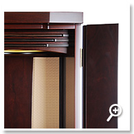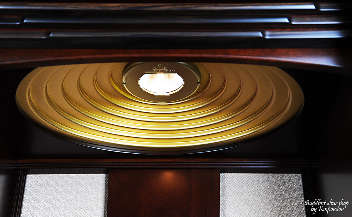 材質には、今なお人気ある高級唐木の「紫檀」を使用し、ライトまわりはオーバルデザインで豪華さをアピール、また洋室・和室問わずどのお部屋にもマッチするインテリアモダン仏壇ということも特徴です。下台は収納スペースを確保。背板付きスライド棚なので収納物落ち防止・スライド棚のはずれ防止となり、経机のかわりとしてもご利用できます。