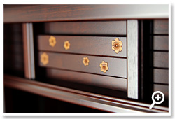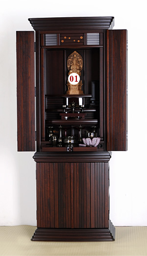 | ■ 商品説明 | 堂々とした佇まいと威厳ある面持ちが印象的な唐木モダン仏壇『風皇 紫檀系』。 フローリング仕様になった扉部分には三方練りを採用していて、その重厚感は他のお仏壇とは一味も二味も違います。 また、欄間や猫戸部分には梅のレーザー彫り、さらにスライド式棚にはガラスが敷かれていて、それにもモダンな桜の模様が施され、 可愛らしさと和のテイストを演出しています。須弥壇中央部分には熟練した職人にしか成し得ないみかげ塗り。さらには高級唐木素材である紫檀系のグラナディロを贅沢に使用しているなど、 まさに高級仏壇と言うにふさわしい、様々な面でワンランク上を行く珠玉の一品となっております。 | |