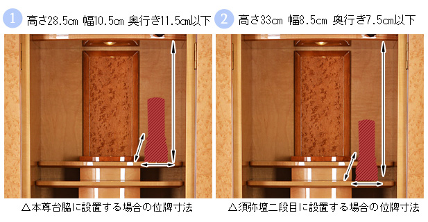 このお仏壇に合う仏像設置する場合は、高さ27cm 幅15cm 奥行き11cmまでの仏像がご安置可能です。