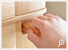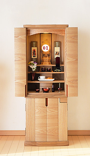 時代は高齢化が進んでいるなか、"立つことが苦痛"という声が多かったため、お仏壇の中央部分に手を掛ける補助機能が設けられた次世代の商品です。手を掛けられること、その少しの優しさで、どれだけ楽になることでしょう。また、デザイン性も優れており、温かみのある木目模様や、伝統的な格子天井、さらには背板部分に日本の祈りの文化を代表する折鶴が施されております。懐かしくもあり、こころ温まる優しさに溢れたお仏壇をぜひ、堪能してみてください。