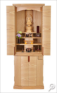 時代は高齢化が進んでいるなか、"立つことが苦痛"という声が多かったため、お仏壇の中央部分に手を掛ける補助機能が設けられた次世代の商品です。手を掛けられること、その少しの優しさで、どれだけ楽になることでしょう。