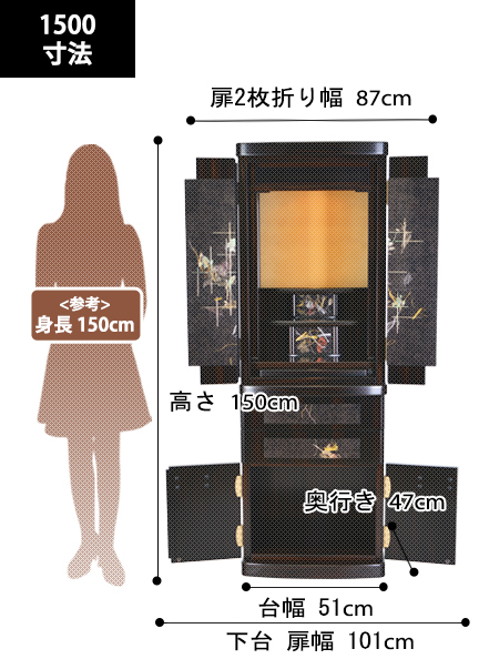 | ■ サイズ | H150cm (上台85.5cm+下台65.5cm) × W51cm × D47cm | |