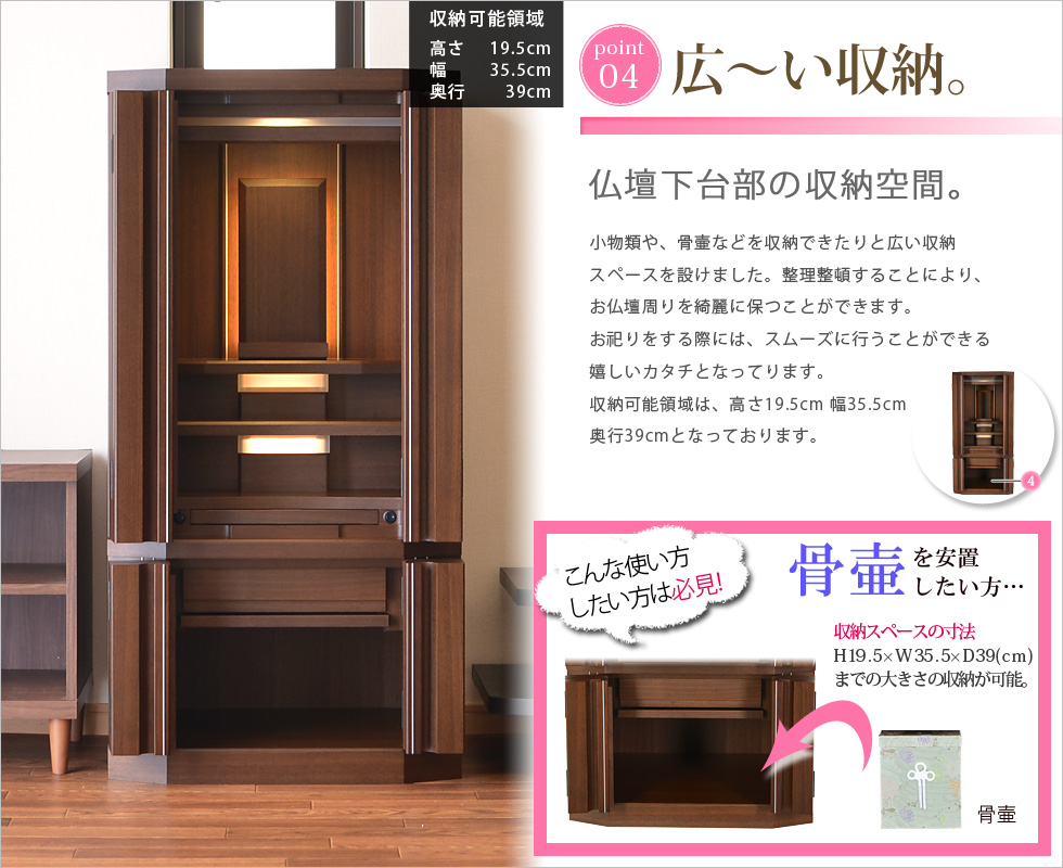 | ■ 機能 | LEDダウンライト / 間接照明 / 本尊台取り外し / 仏具板 / 引き出し | |