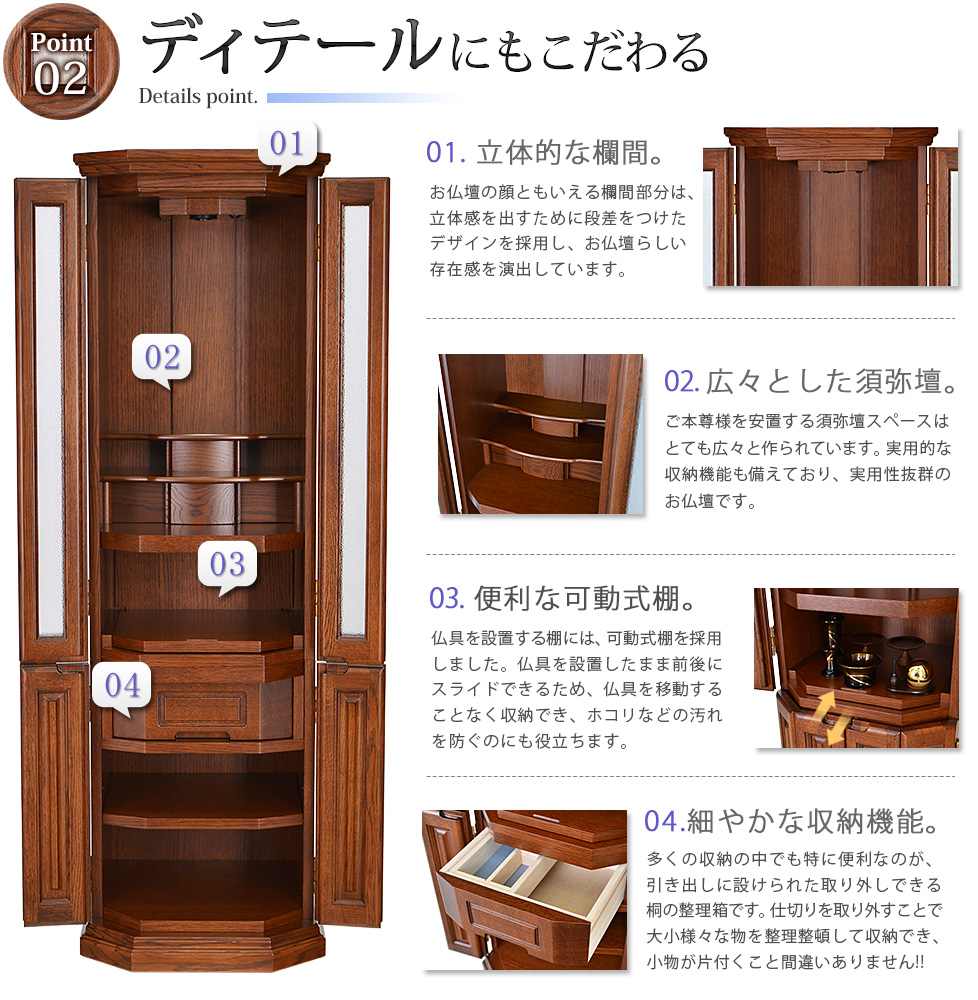 | ■ 収納 | かたみ箱 / 隠し収納×2 / 仏具板 / 引き出し(桐箱付) |