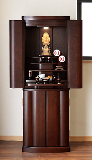 ご本尊様をご安置する須弥壇部分には、既にお持ちの仏像や掛け軸などの大きさに対応が利くよう、上台の本尊台と須弥壇が取り外せる仕様となっているのも嬉しい機能です。機能性とデザイン性の両方が兼ね備わったお仏壇となっております。