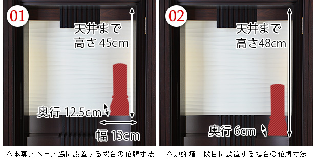 こちらの商品を設置いただく場合は、高さ140cm、幅62cm、奥行48.5cm以上のスペース確保をおすすめいたします!奥行については上台の間接照明のコードを配線するのに3cm分必要となります。
