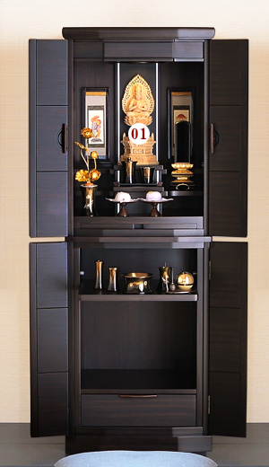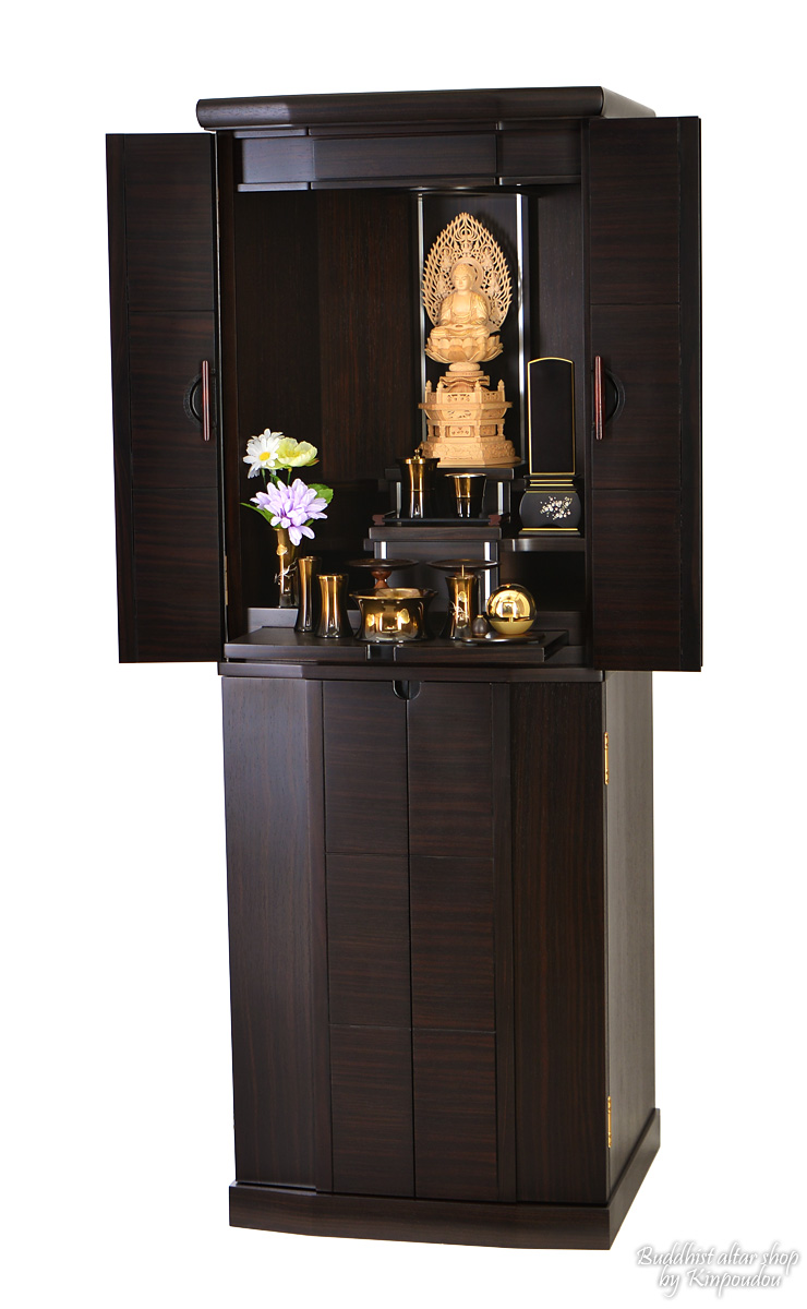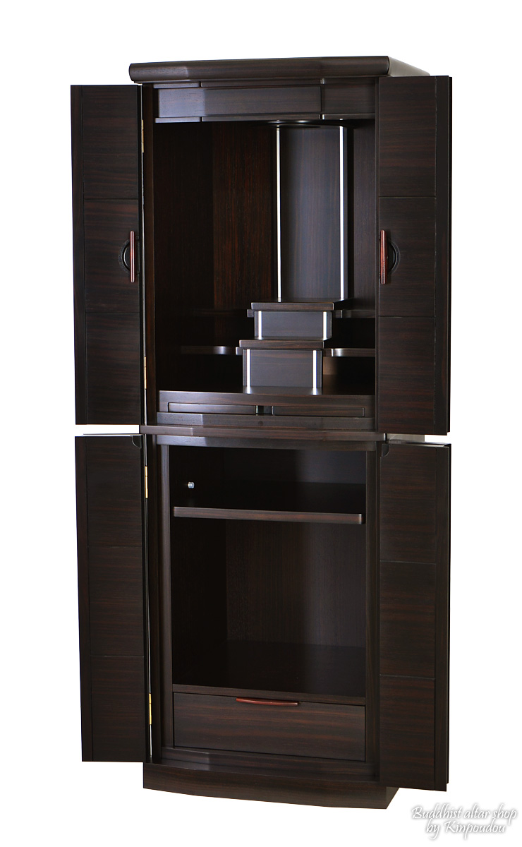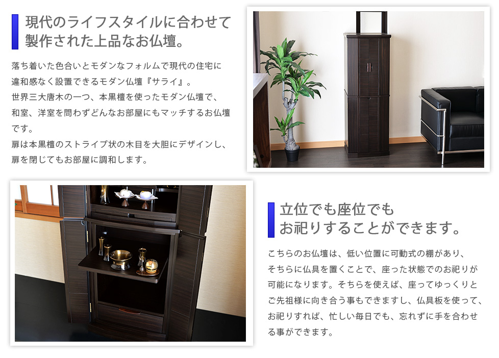 スタイリッシュな佇まいと威厳ある本黒檀の縞模様が美しい唐木モダン仏壇『サライ 本黒檀』。