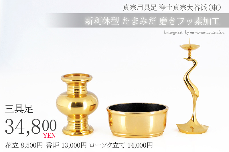 真宗用具足 新利休型 たまみだ磨きフッ素加工 三具足セット