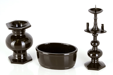 浄土真宗本願寺派(西)用の花立、香炉、ローソク立ての三具足セットです。