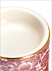 見る人を魅了する、陶器の温もり、滑らかな質感、心地よさ。陶器 ゆい花 ワインレッドはお仏壇に華やかな印象を与えます。全て国産で作られており、安心して末永くご使用頂けます。