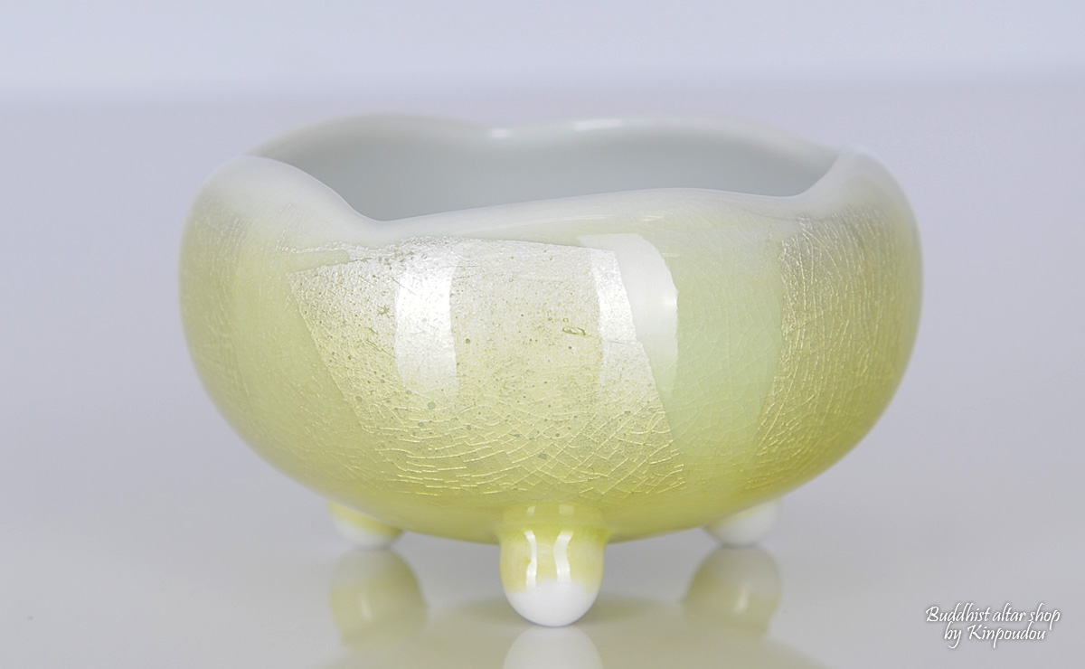 - 仏具単品 香炉(丸香炉) > 九谷焼銀彩 ほのか イエロー 香炉(丸香炉)