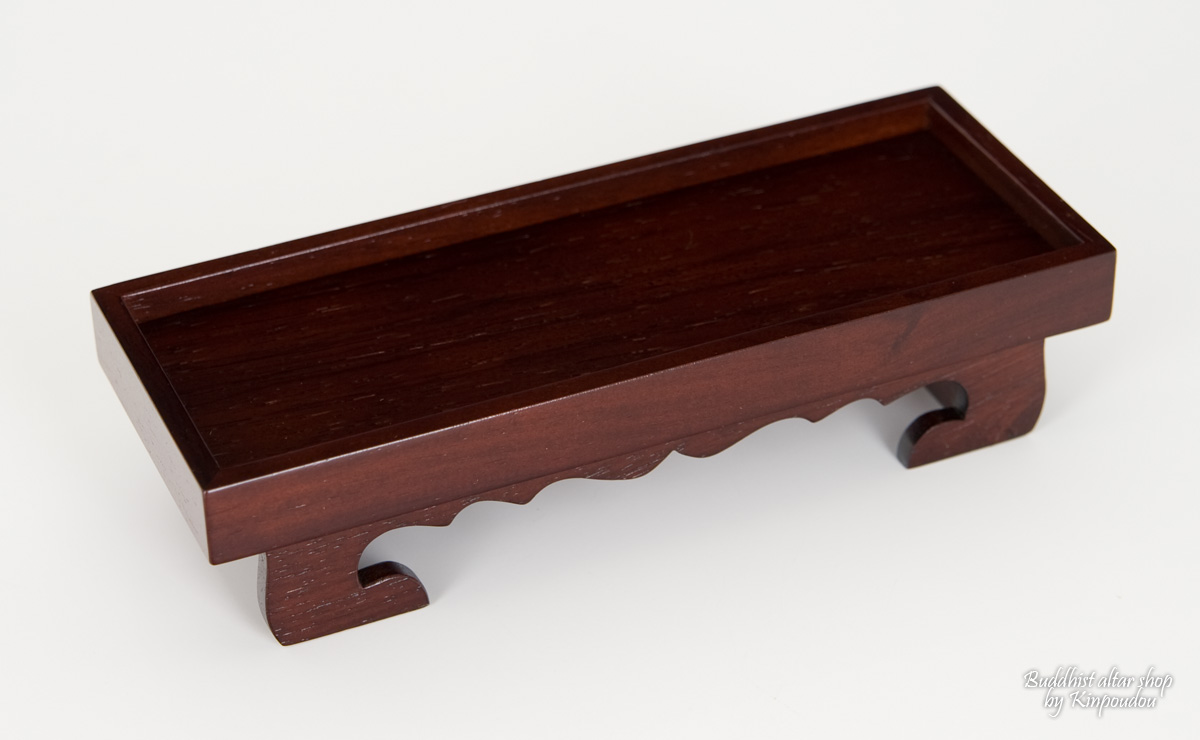しっかりとした縁があり仏器が滑ったときでも、受け止めてくれます。土台部分の彫刻は伝統的上におく仏器や茶器を引き立ててくれます。