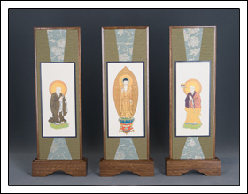 お仏壇の大央でしっかりと存在してくれるでしょう。こちらの掛け軸(うすずみ)は天然桐素材のスタンド型の掛け軸です!!