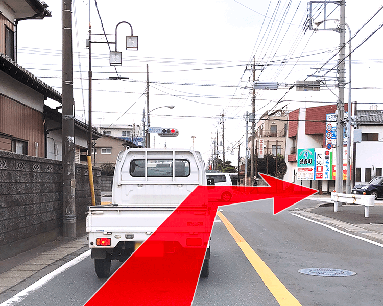 交差点『野田市駅入口』を直進して、県道46号線をお進みください。