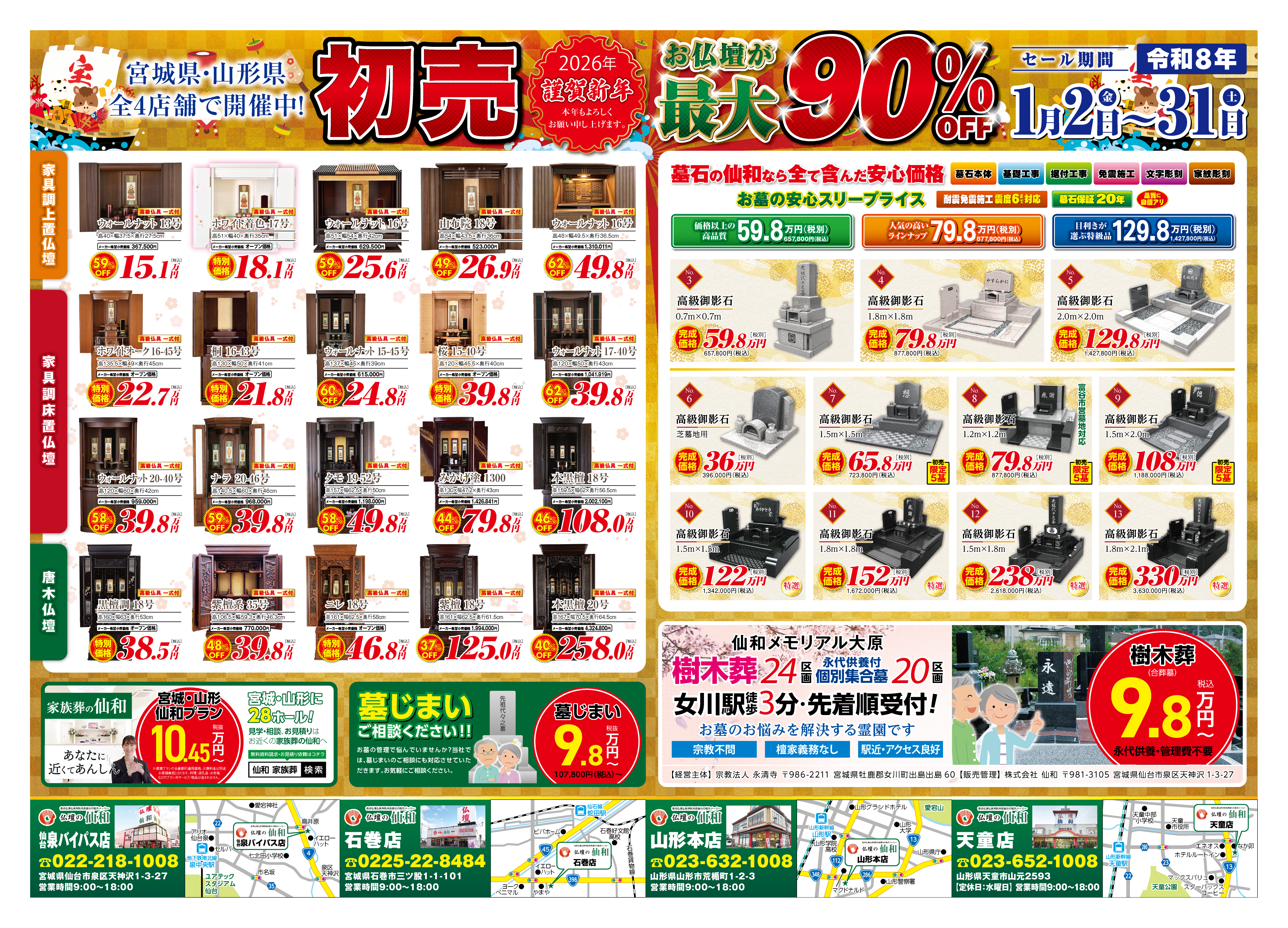 地域最大級の仏壇の取り揃え!常時180本展示しております!