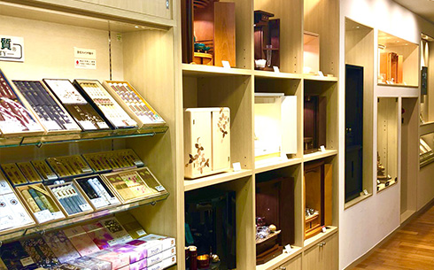 コンパクトでおしゃれな 現代仏壇・仏具から日常使いの線香・ローソク・数珠など厳選された取り揃え、専門スタッフが親切に対応いたします。