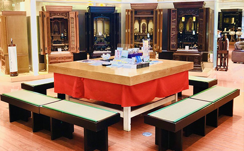 ご遠方からお越し頂いたお客さまにも必ずご満足いただけますよう、セレモアオリジナル商品やお位牌、ご本尊も多数展示してございます。駐車場も完備しておりますのでお車でのご来店も安心です。